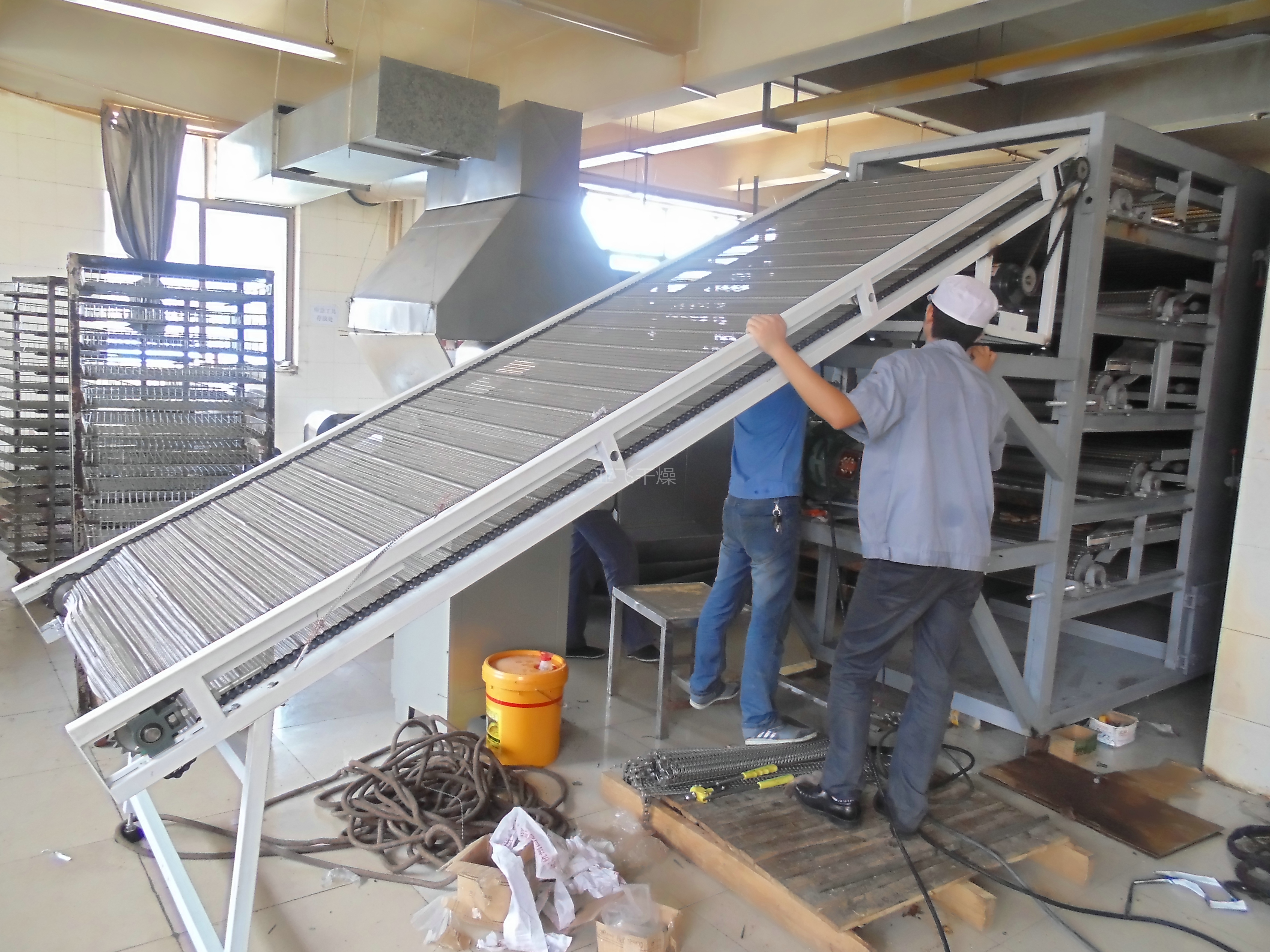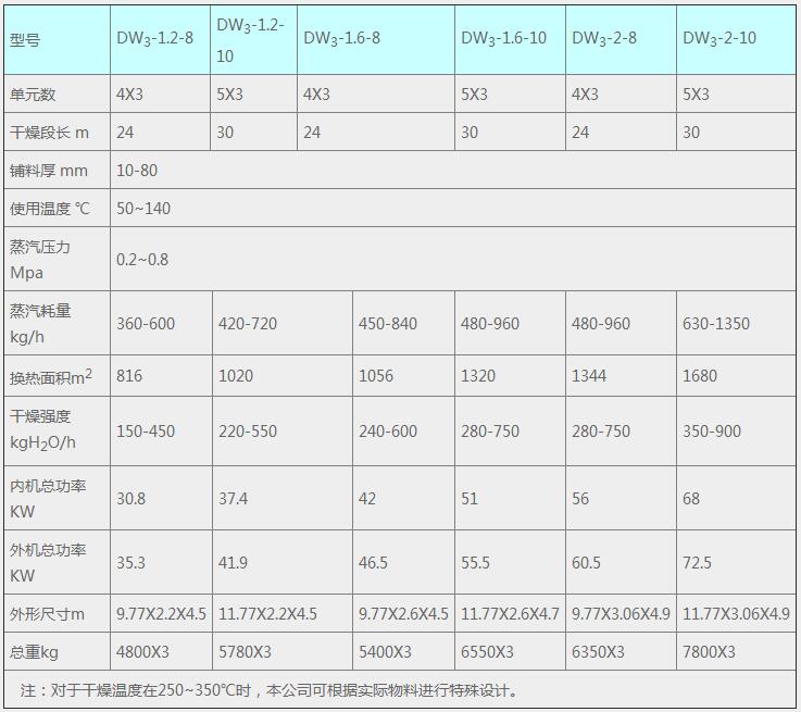 DW系列多层带式干燥机是成批生产用的连续式干燥设备,用于透气性较好的片状、条状、颗粒状物料的干燥,对于脱水蔬菜、催化剂、中药饮片等类含水率高、而温度不允许高的物料尤为合适;该系列干燥机具有干燥速度快、蒸发强度高、产品质量好的优点,对脱水滤饼状的膏状物料,需经造粒或制成条状后方可干燥。