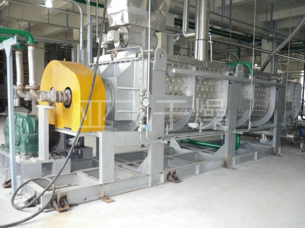 浆叶干燥机已成功地用于食品、化工、石化、染料、工业污泥等领域。设备传热、冷却、搅拌的特性使之可以完成以下单元操作:燃烧(低温)、冷却、干燥(溶剂回收)加热(融化)、反应和灭菌。搅拌浆叶同时又是传热面,使单位有效容积内传热面积增大,缩短了处理时间。楔型浆叶传热面又具有自清洁功能。压缩--膨胀搅拌功能使物料混和均匀。物料沿轴向成"活塞流"运动,在轴向区间内,物料的温度、湿度、混合度梯度很小。用导热油做热介质浆叶干燥机可完成低温燃烧工作。如:二水硫酸钙(Ca2SO4·2H2O) 燃烧转化为半水硫酸钙(Ca2SO4·1/22H2O)。碳酸氢钠(NaHCO3)经煅烧转化为纯碱(Na2HCO3)等。通入冷却介质,如水、冷却盐水等即可用来冷却。如:使用于纯碱行业的浆叶式凉碱机,取代老式的空气冷却凉碱机,节省了能源及尾气处理设备,降低了操作费用。干燥,设备最主要的功能,不使用热空气,使溶剂回收、能源消耗、环境控制处于易处理的理想状态。对需回收溶剂、易燃易氧化热敏性物料尤为适应。已广泛用于精细化工、石化、染料行业。轴向区间内,温度、湿度、混合度的均匀性,使得设备可用来加热或融化,或进行一些固体物料反应。在复合肥及变性淀粉行业均已成功使用。浆叶干燥机可用来对食物和面粉进行灭菌处理。单位有效容积内大的加热面积,很快就将物料加热到灭菌温度,避免了长时间加热而改变物料品质。