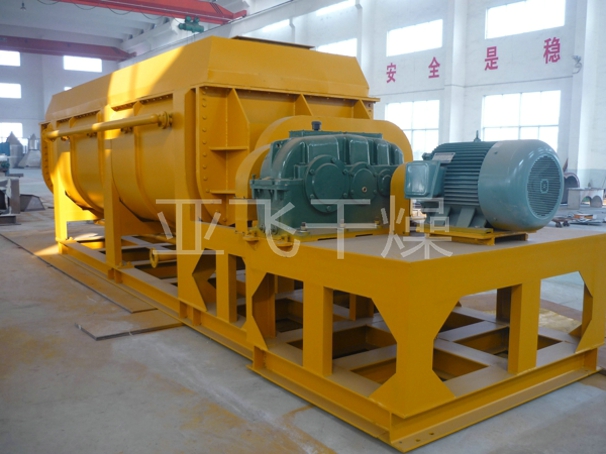 空心轴上密集排列着楔型中空浆叶,热介质经空心轴流经浆叶。单位有效容积内传热面积很大,热介质温度从-40℃到320℃,可以是水蒸汽,也可以是液体型:如热水、导热油等。间接传导加热,没有携带空气带走热量,热量均用来加热物料。热量损失仅为通过器体保温层向环境的散热。楔型浆叶传热面具有自清洁功能。物料颗粒与楔型面的相对运动产生洗刷作用,能够洗刷掉楔型面上附着物料,使运转中一直保持着清洁的传热面。浆叶干燥机的壳体为Ω型,壳体内一般安排二到四根空心搅拌轴。壳体有密封端盖与上盖,防止物料粉尘外泄而充分发挥作用。